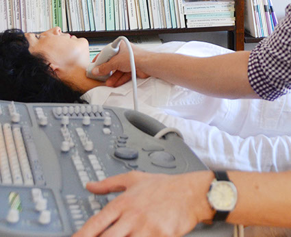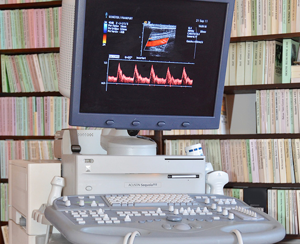 Die Carotisdoppler-Untersuchung wird mit einem High-End-Ultraschallgerät durchgeführt. Sollten wesentliche Aderveränderungen an der Halsschlagader gefunden werden, können die Untersuchungen auch anderer Gefäße geplant werden. Sollten die Adern bereits bedrohlich eingeengt sein (signifikante hochgradige Stenose), werden über die Universitätsklinik Frankfurt, aber auch andere gefäßchirurgisch versierte Kliniken, entsprechende Akutmaßnahmen eingeleitet.